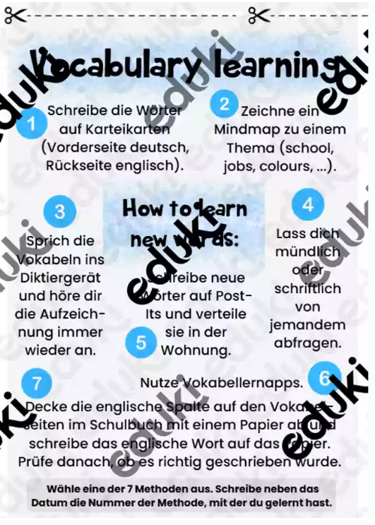Vokabeln lernen Faltbüchlein (zur Dokumentation: 10min Vokabeln lernen)